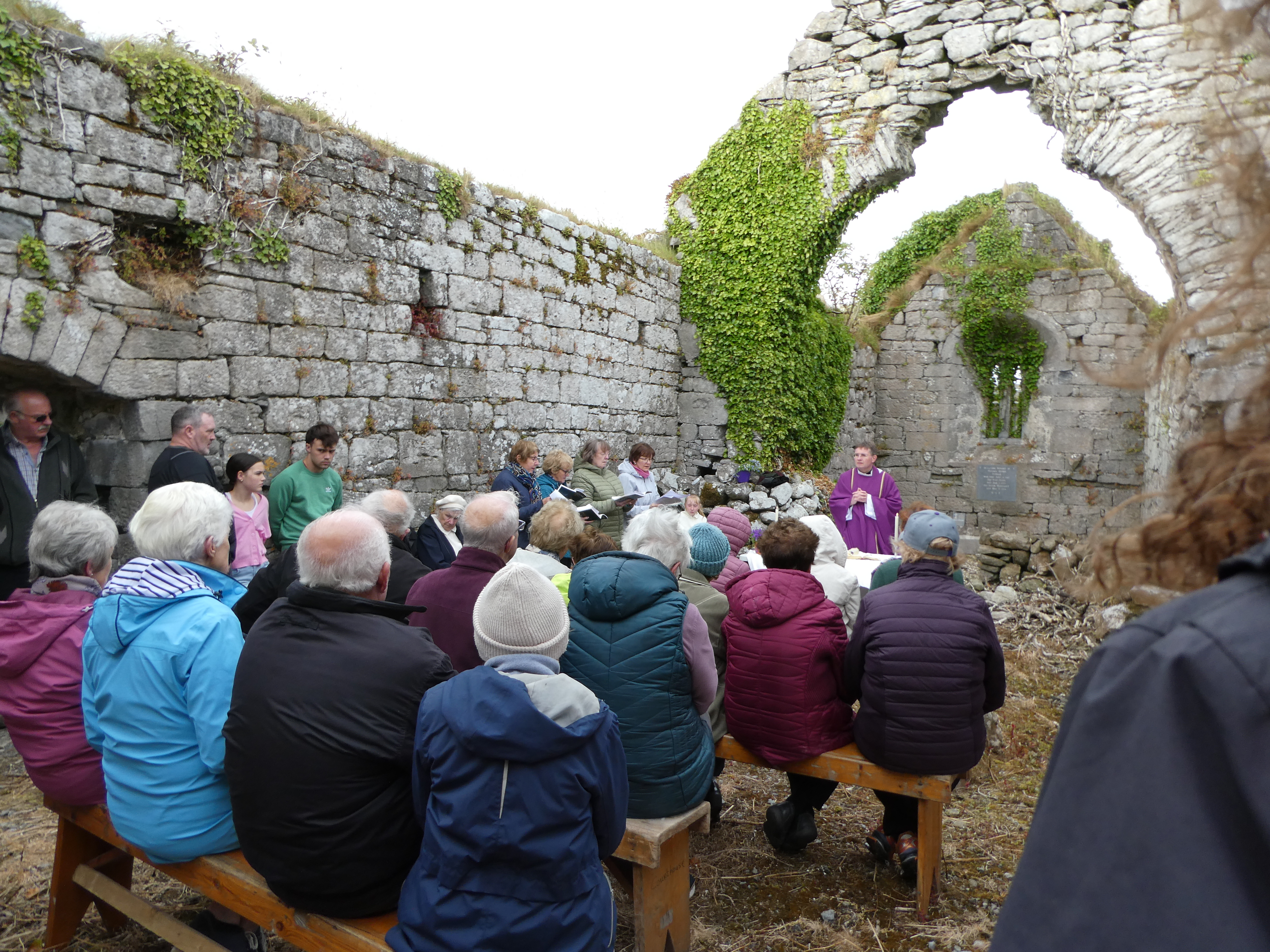 The congregation at Mass in the old Church in Parkmore Cemetery, Kinvara, on 5th July 2024.