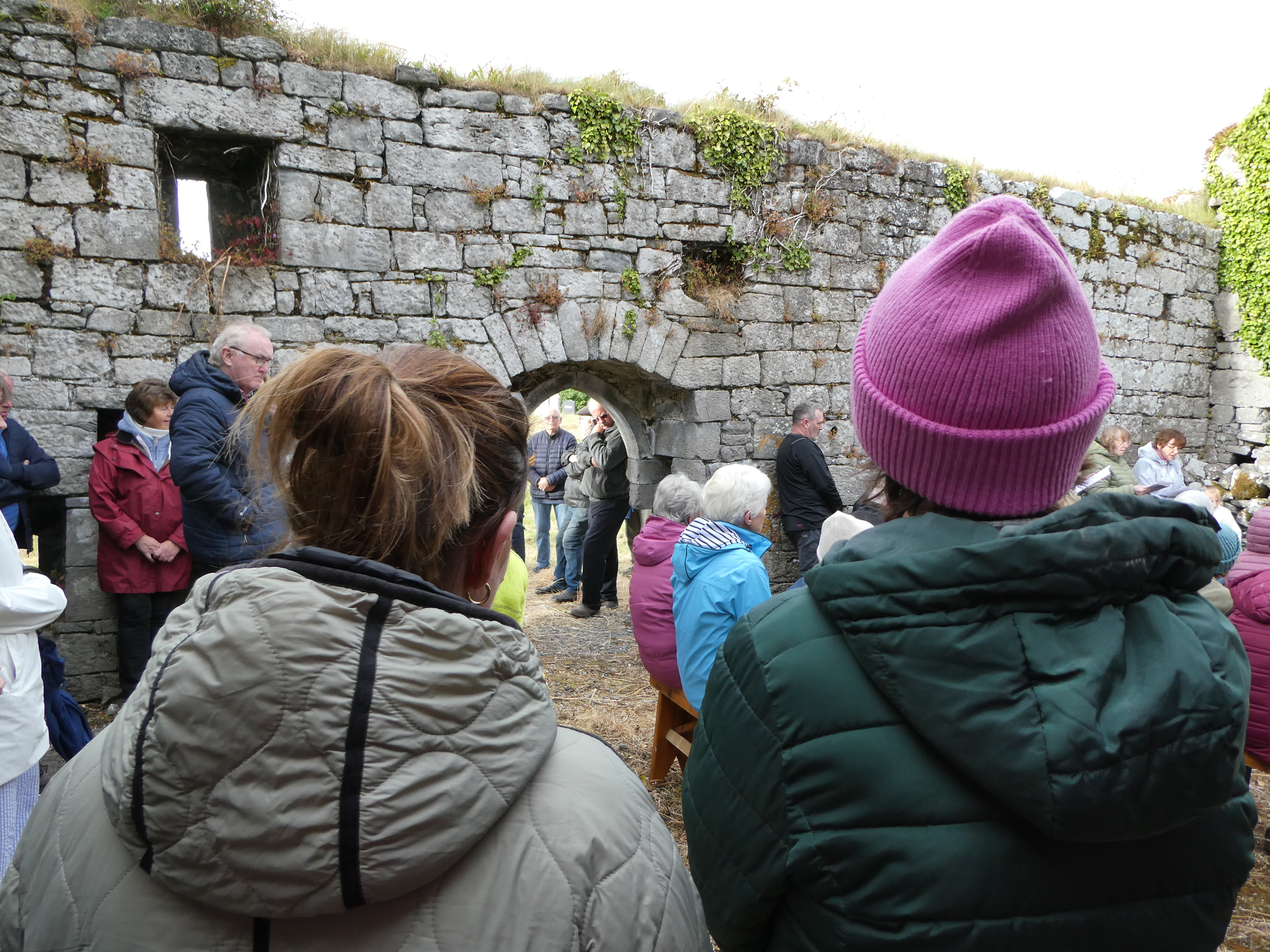 The congregation at the Cemetery Mass in the ruins of the old Church in Parkmore Cemetery, Kinvara, on 5th July 2024.